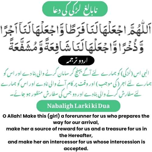 Namaz e Janaza Ki Dua in Urdu (For Underage Girl)
